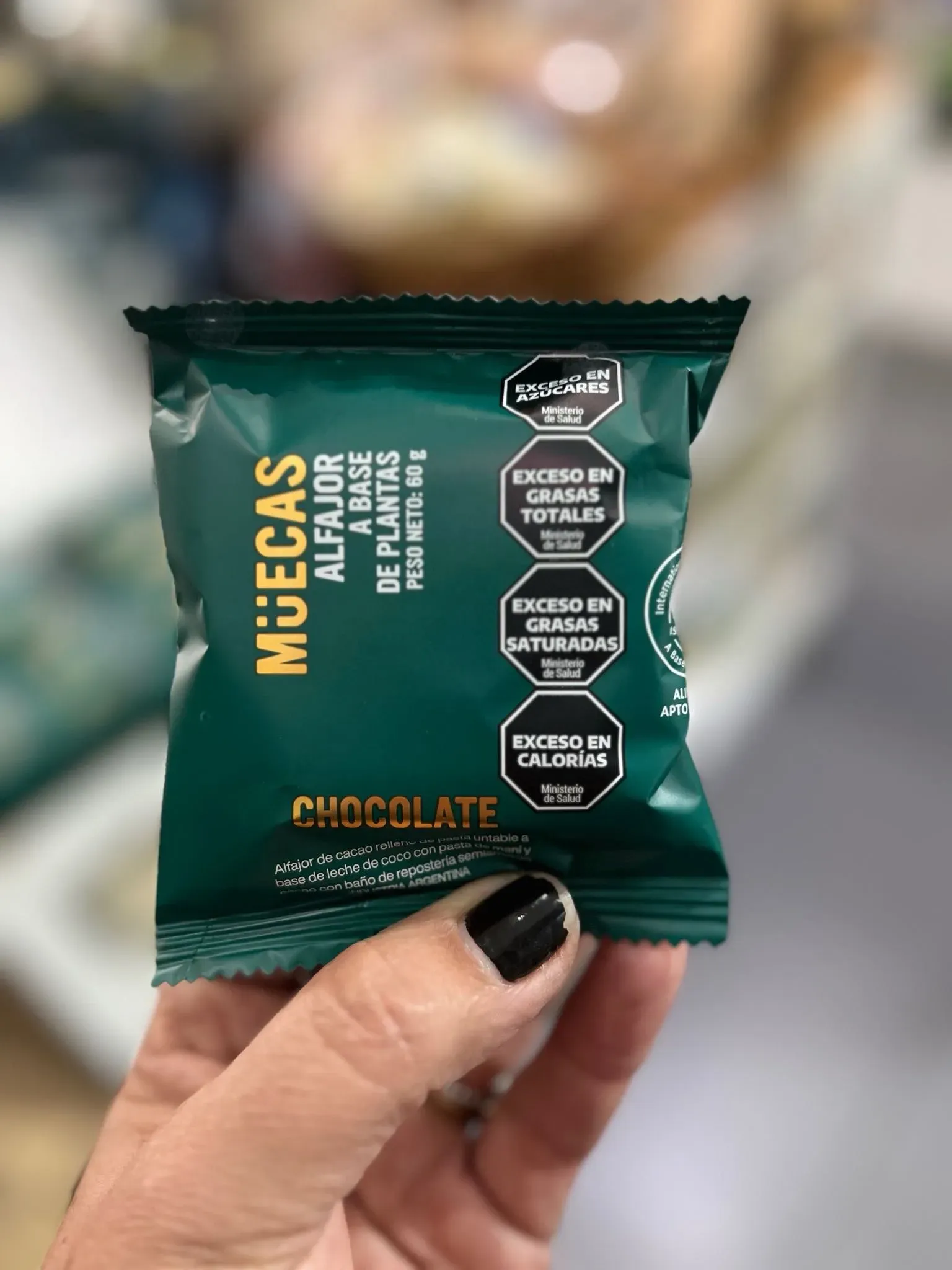 Delicioso alfajor Muecas relleno con dulce de leche, apto para veganos. Disfruta de este clásico argentino con ingredientes de alta calidad. Perfecto para satisfacer tus antojos dulces de forma consciente. ¡Prueba este delicioso bocado hoy mismo!